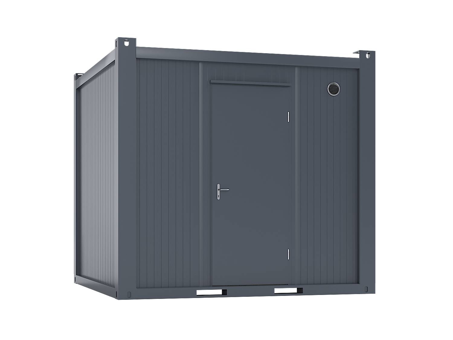 The 10 ft Office Container can be equipped with several accessories and the desired layout. Popular accessories include air source heat pumps, computer sockets, heat recovery ventilation machines, and additional windows. The window of the container has standard aluminum roller shutters, meaning that you can safely close up for the night, for example. Handling with a crane from the corner pieces or forklift pockets.