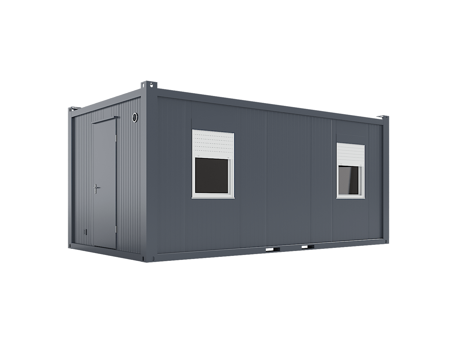 The 6×3.2 m Break Room can be equipped with several accessories and the desired layout. Popular accessories include air source heat pumps, computer sockets, a heat recovery ventilation machine, and additional windows. The window of the container has standard aluminium roller shutters, meaning that you can safely close up for the night, for example. Handling with a crane from the corner pieces or forklift pockets.