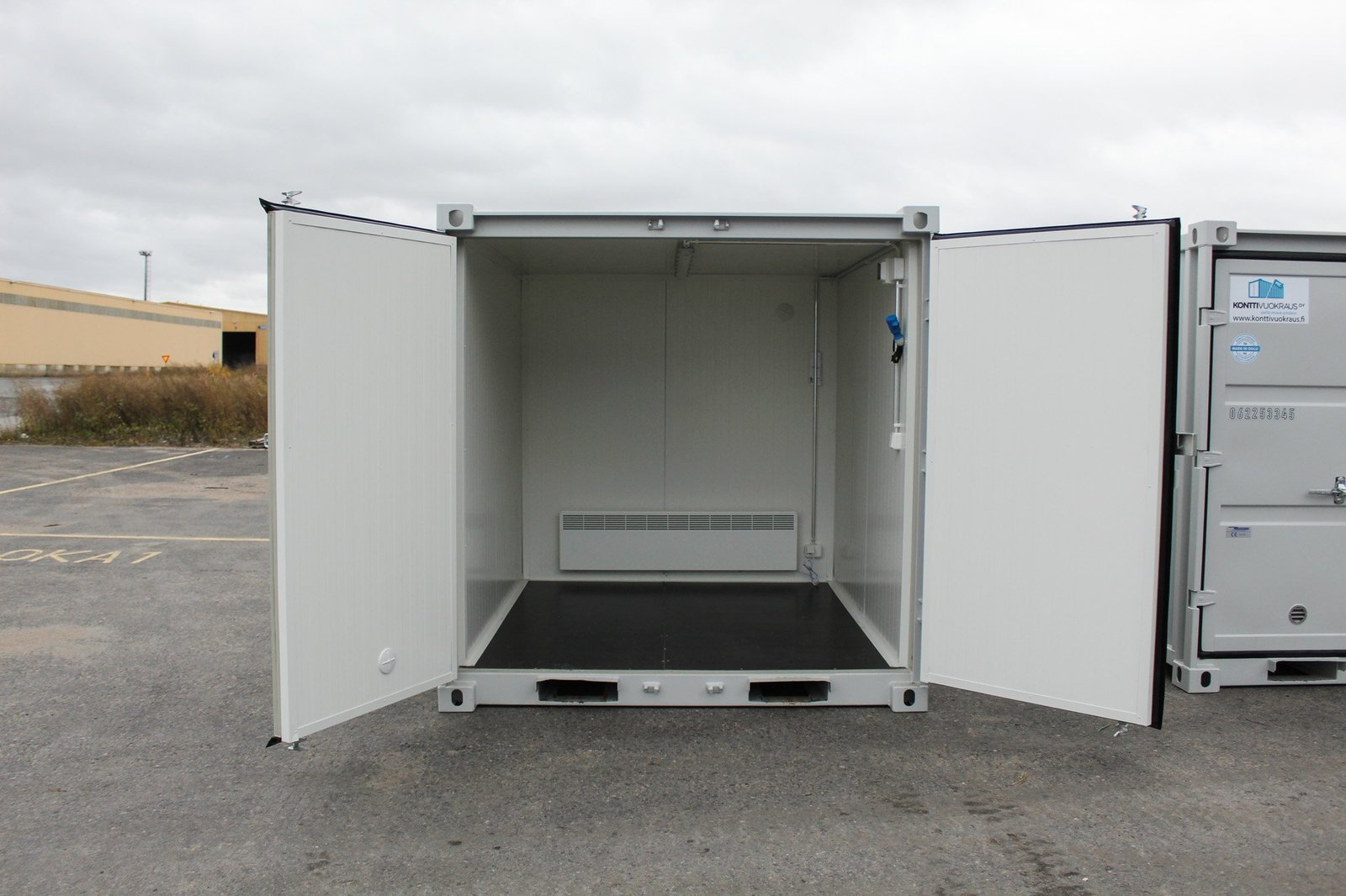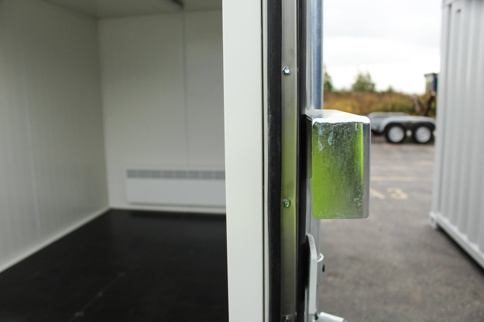 We use 40mm PIR insulation for the walls, doors, and ceiling of our insulated shipping container for sale. The interior walls are made of a white metal plate, making this bright space easy to keep clean and resistant to moisture. What’s best about this insulated model is that you get to skip potentially moldy wool insulation and plywood walls altogether. PIR insulation does not mold or lose its thermal value, so it lasts twice as long as cheap wool+plywood containers. With the same insulation thickness, the thermal values are 50% better compared to XPS and wool insulation, which maximizes the internal dimensions of the container. We also add white moldings to all insulated containers to finish off the interior.