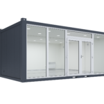 There are 20 recessed LED lights in the ceiling of the Office Containers , and you can choose glass double doors or a single glass access door. This space is a perfect solution when you need a showroom, workspace, or store, and a boring space option that looks like a hut does not appeal to you. We also supply other colours, and the glass profiles are also available in the same colours as the containers, instead of the standard white. Office Containers can be linked to each other, with the power supplied by a 5-pin, 32A socket, which can also be converted to 16A with an adapter.